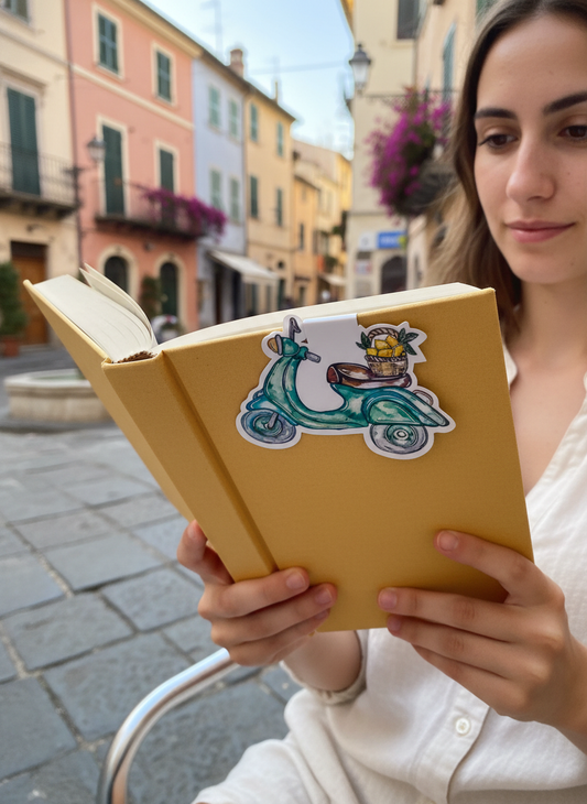 Vespa Bike Magnetic Book Mark – Watercolour European Summer Art Illustration