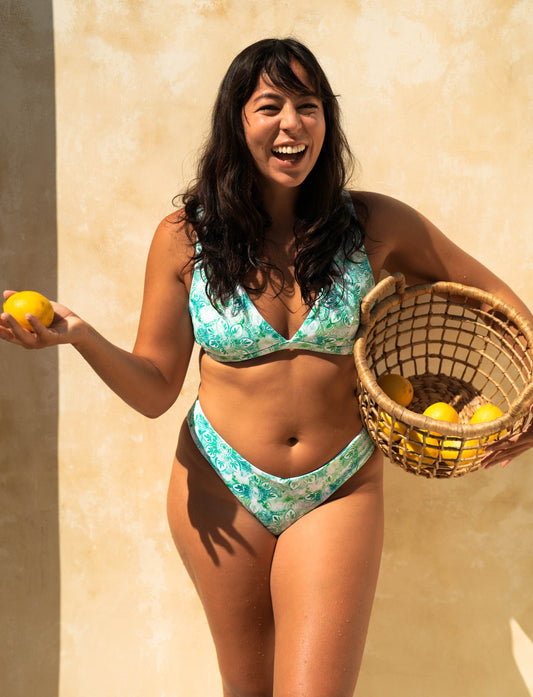 Reversible Bikini Bottom -Green Patterned Mandala with Plain Mint Pastel Green
