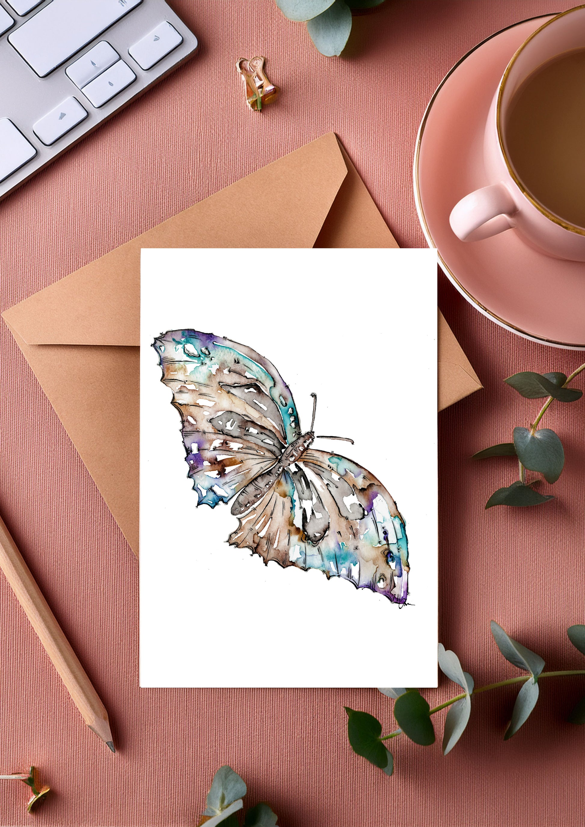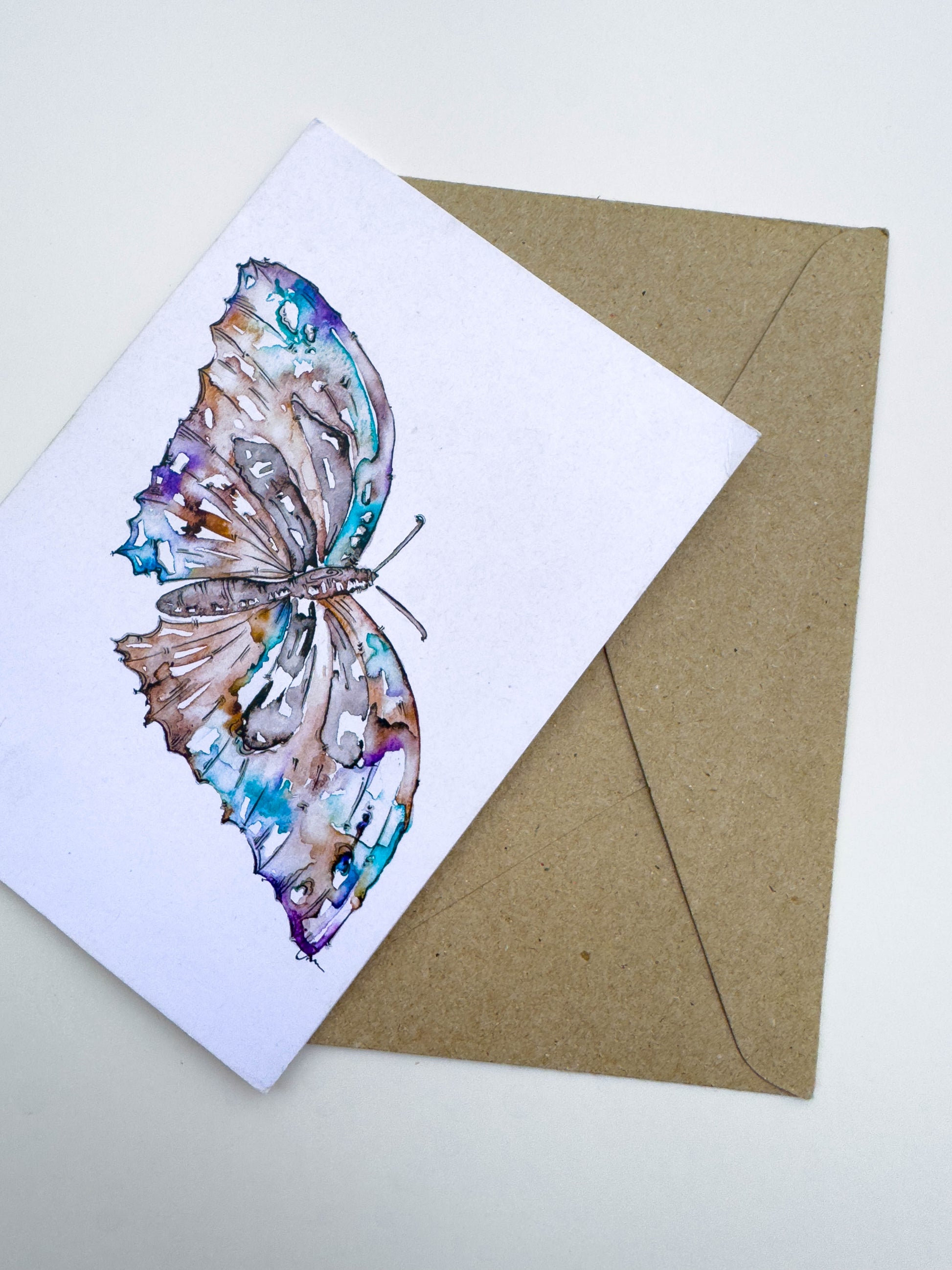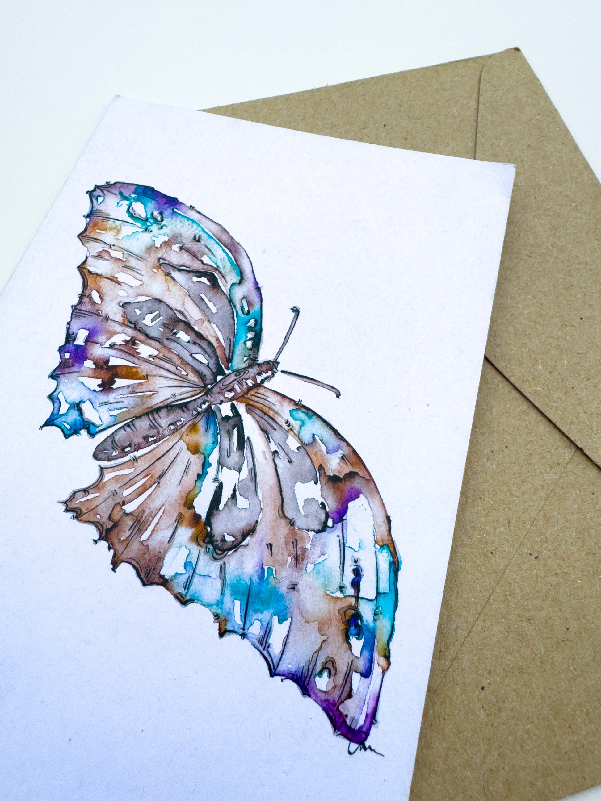 Butterfly Greeting Card – Watercolour & Ink Illustration