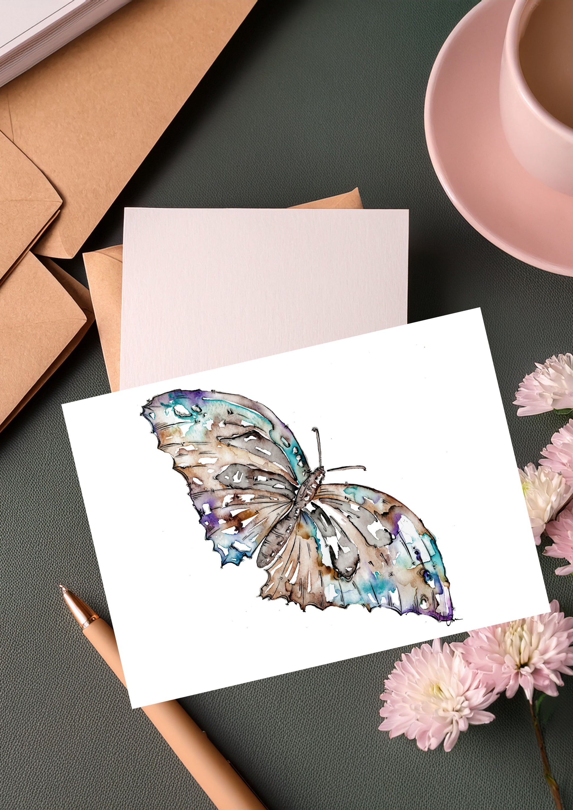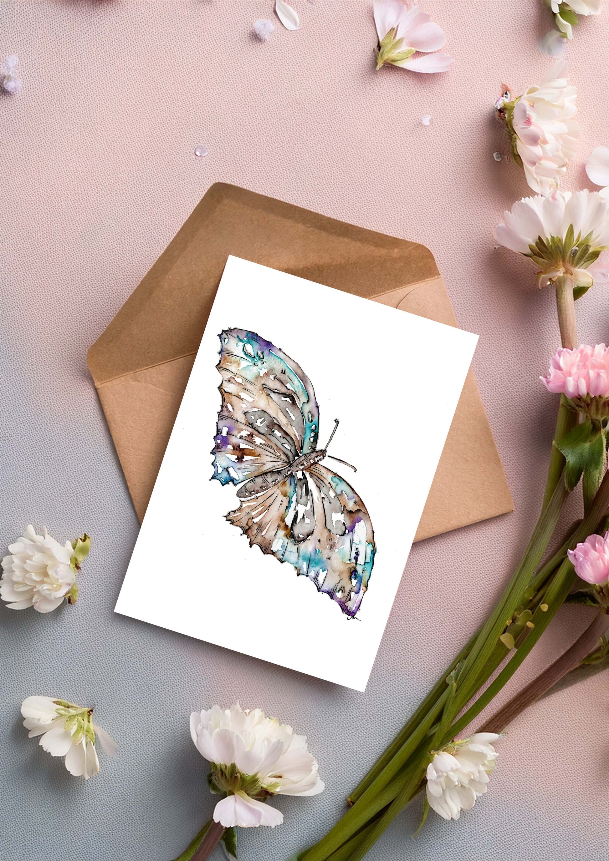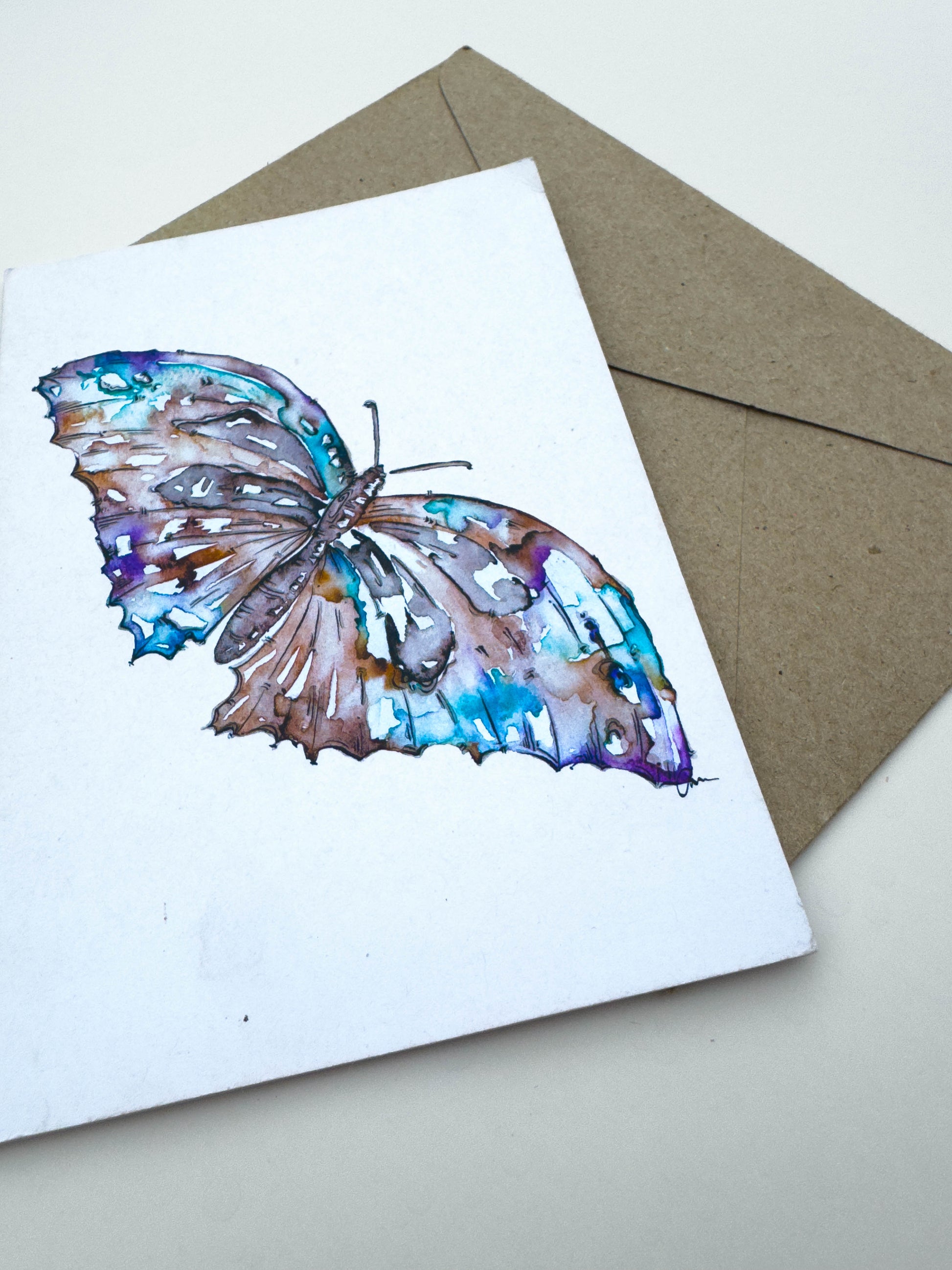 Butterfly Greeting Card – Watercolour & Ink Illustration