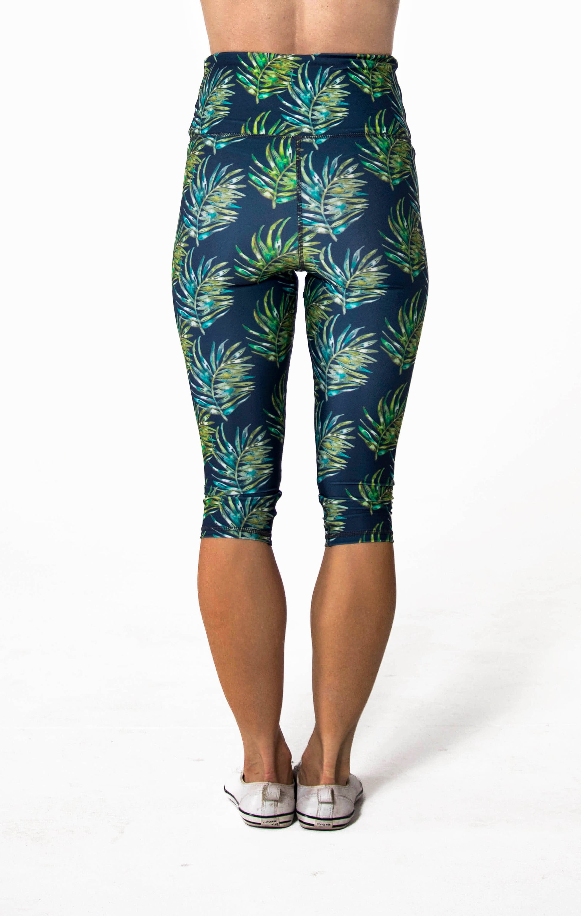 These Capri leggings are a 3/4 length providing coverage from waist band to below the knee / calf. Made for those warmer day from eco-friendly fabric that you can sweat or splash in.