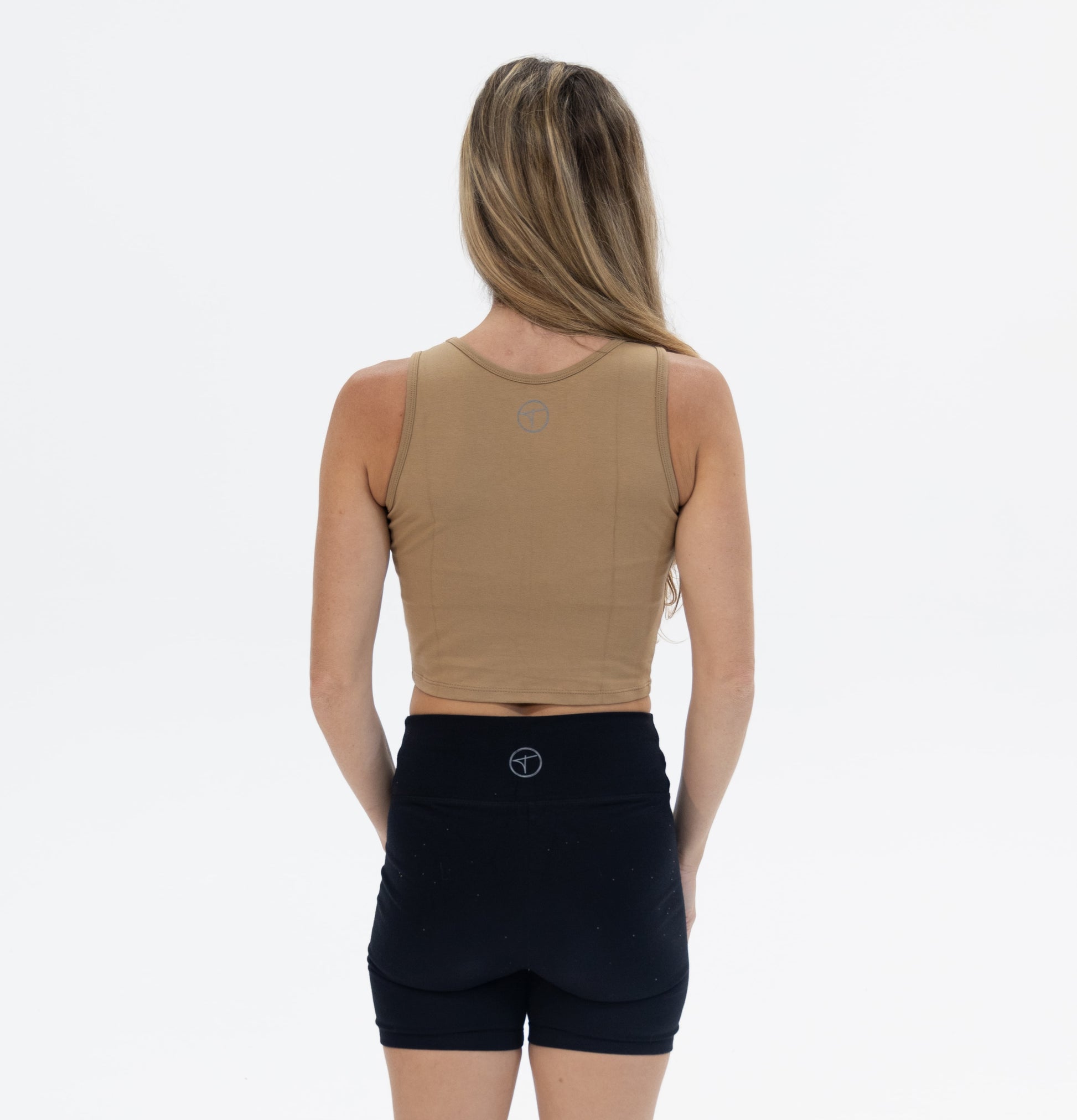 Trevena tanks are a fitted short cropped tank top with a classic high neck line. From workouts to weekend errands, these tank tops are the perfect multipurpose wardrobe staple. The high-quality durable cotton lycra is dyed is a toffee light brown hue.