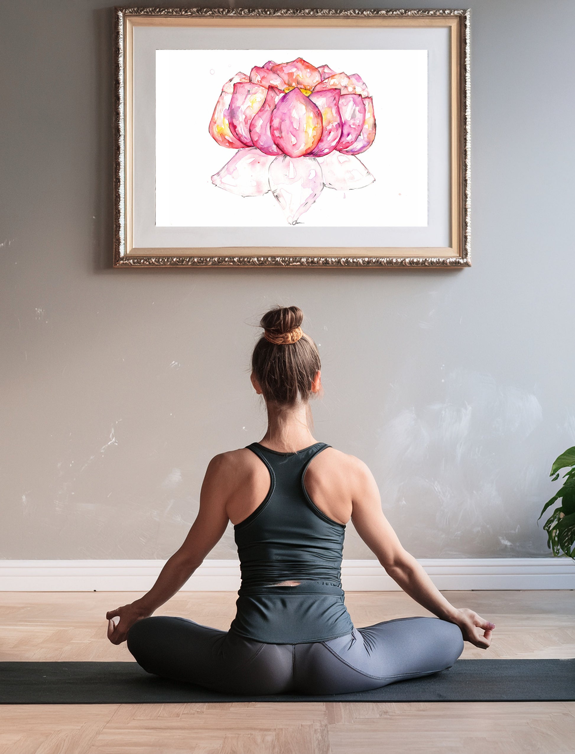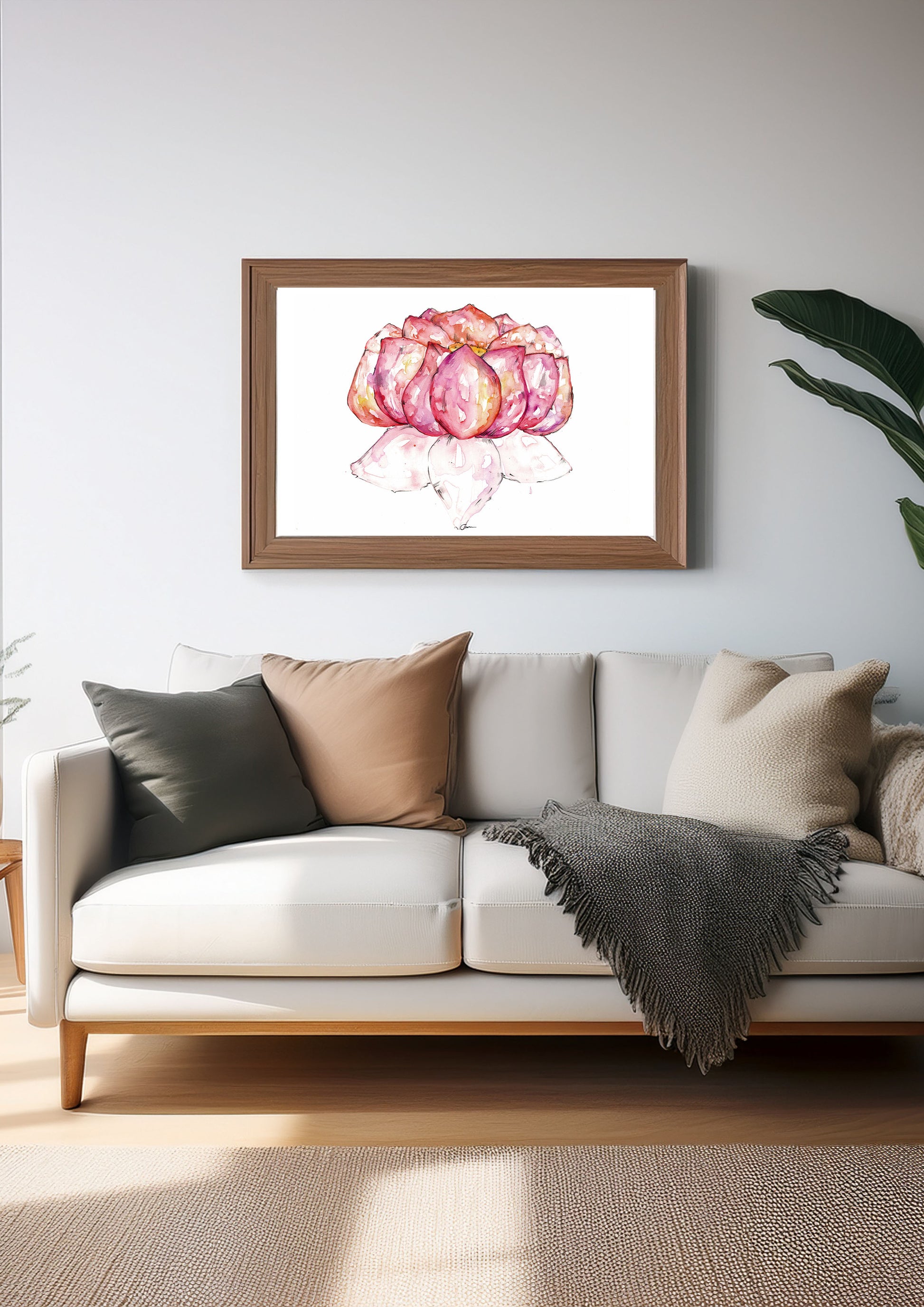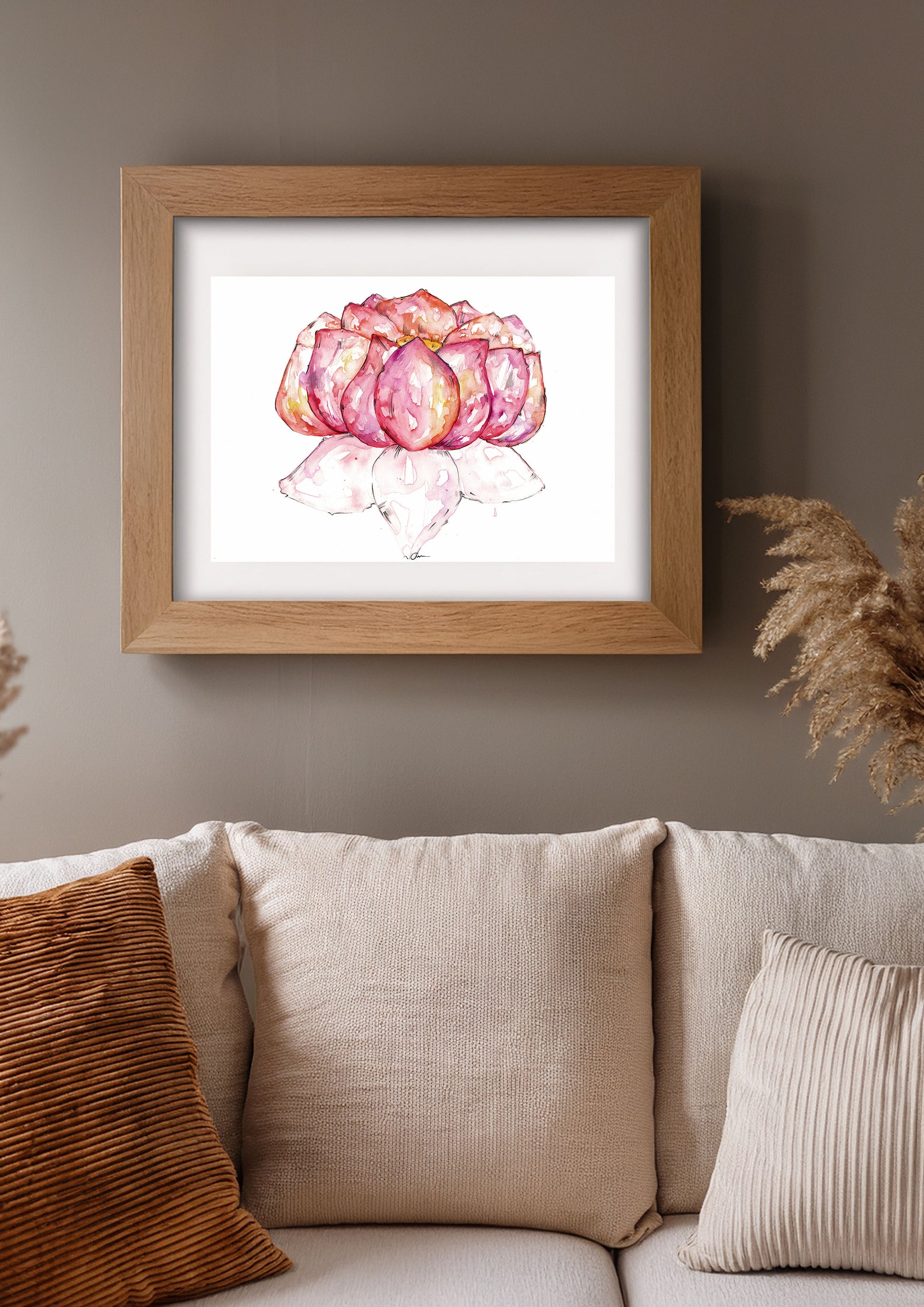 Lotus Flower Art Print – Hand-Painted Watercolour & Ink Illustration