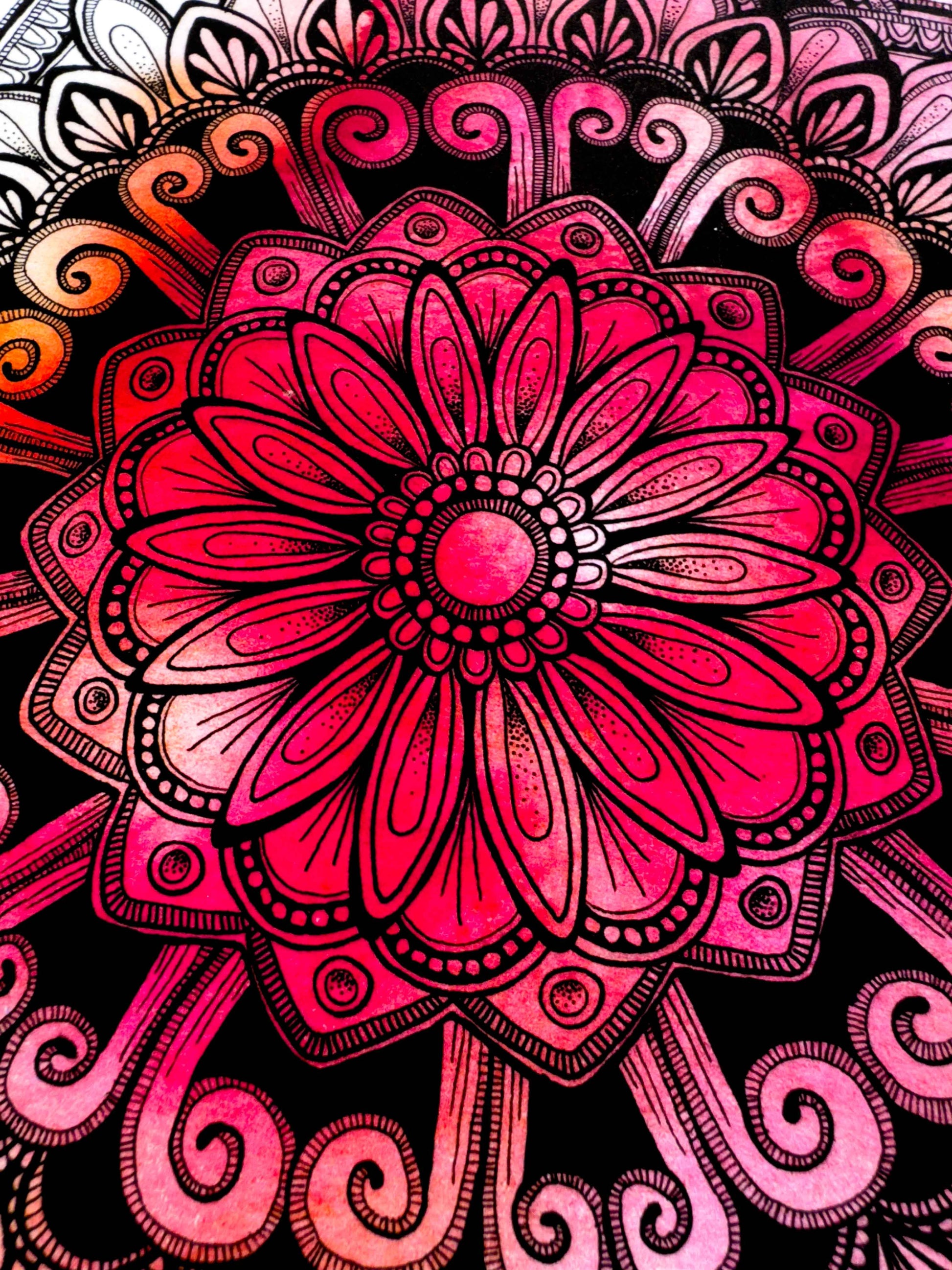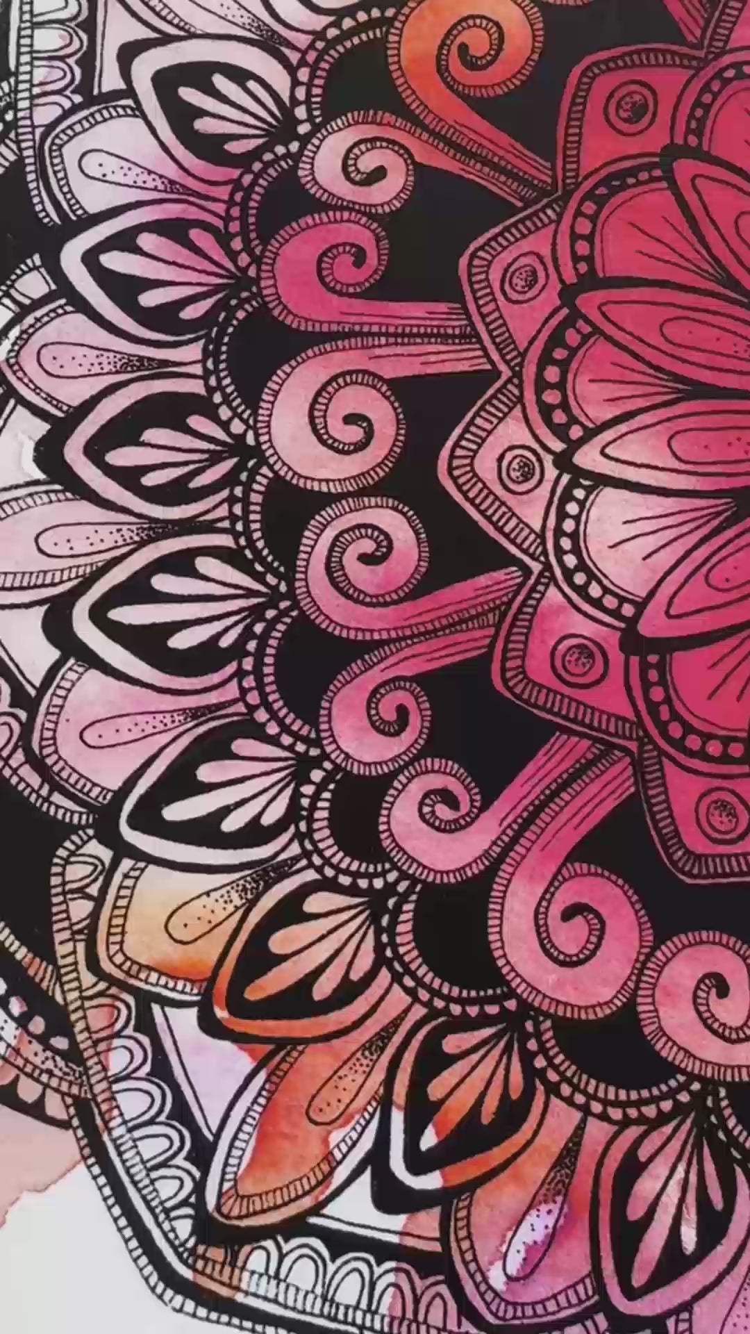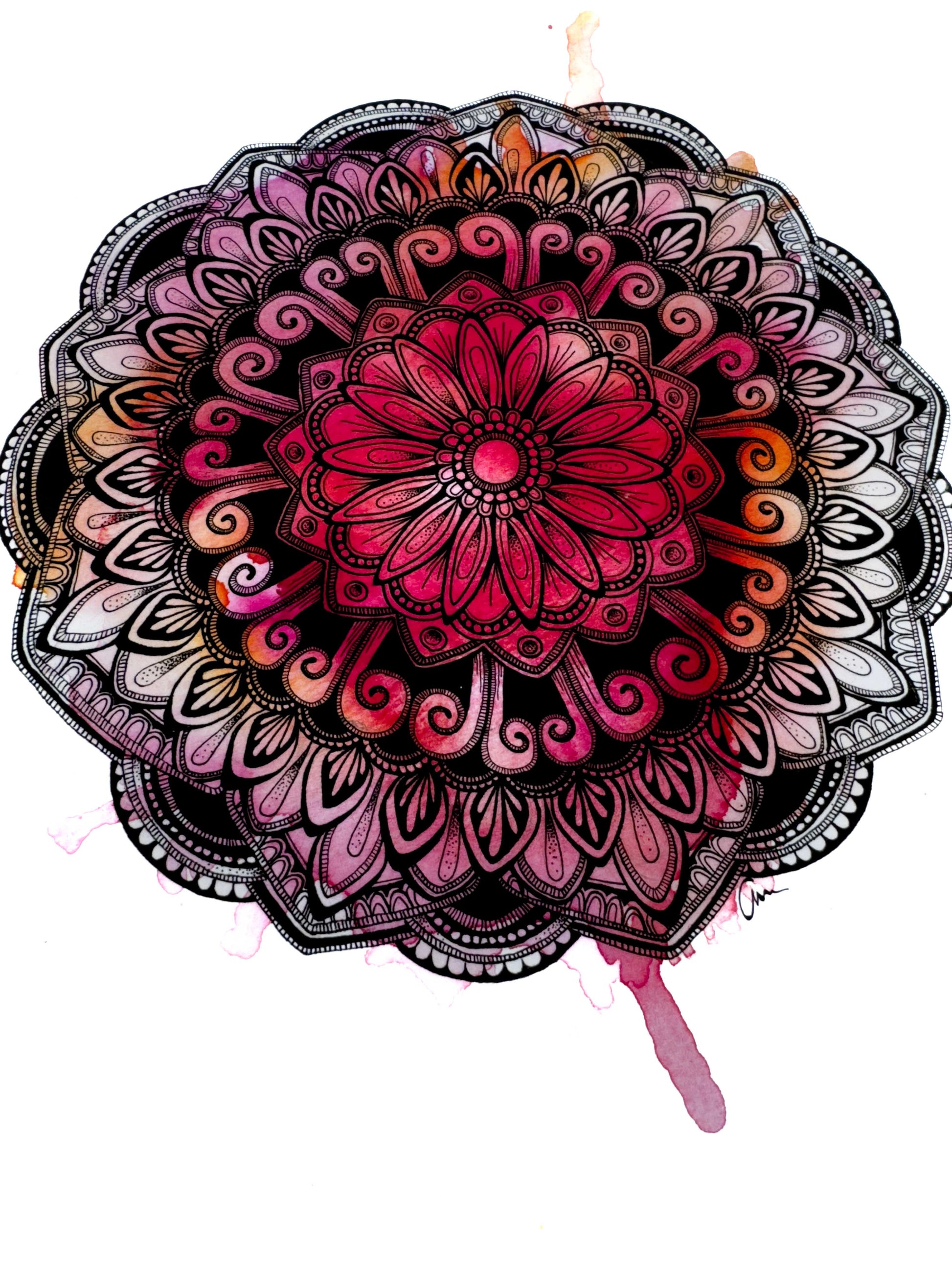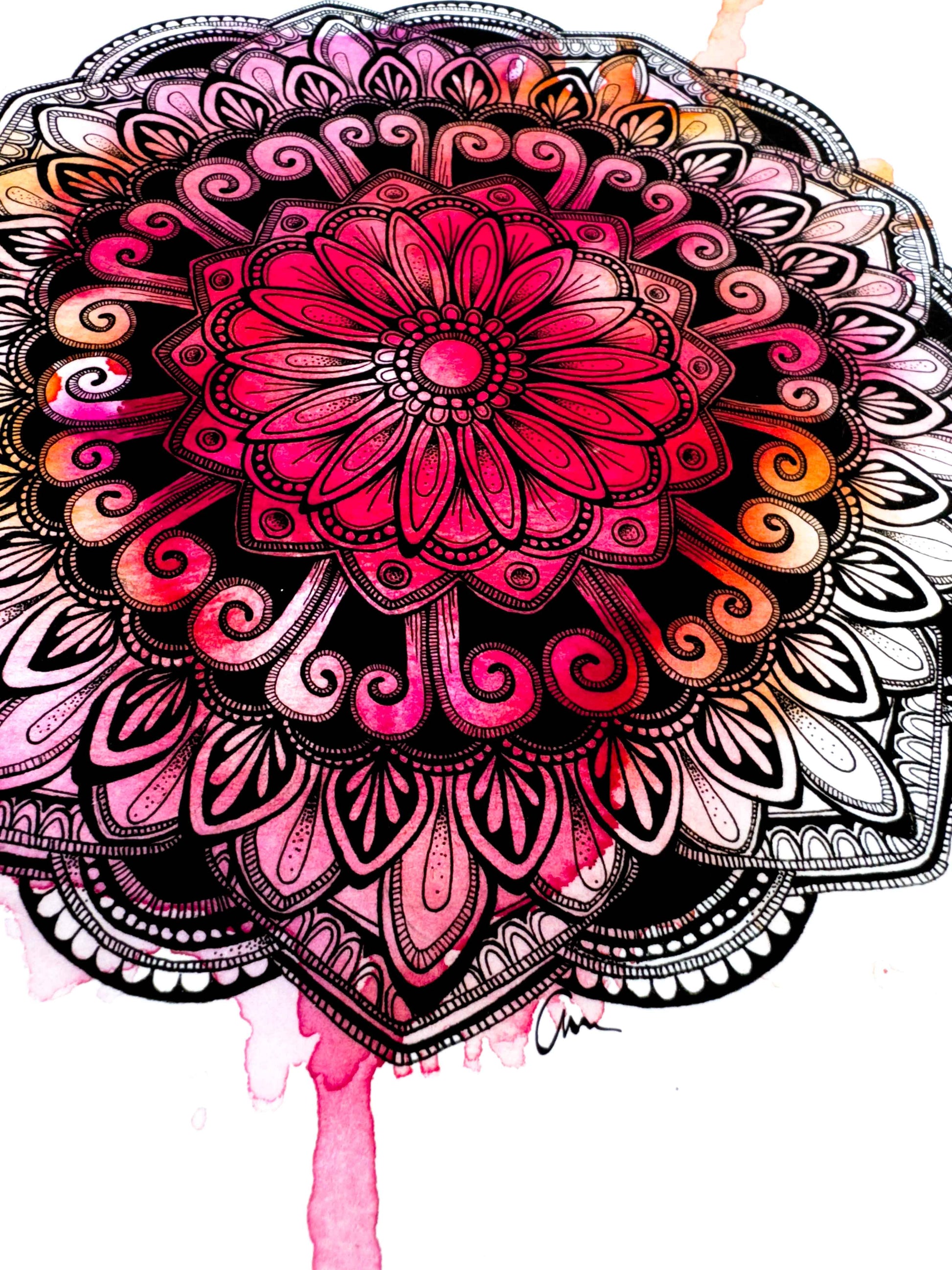 Mandala Art Print – Ink Drawing with Pink Watercolour Background