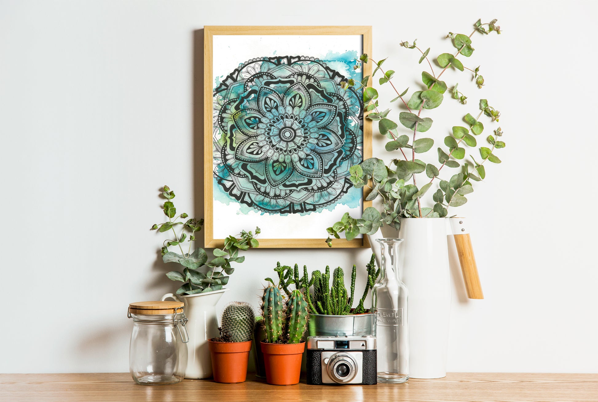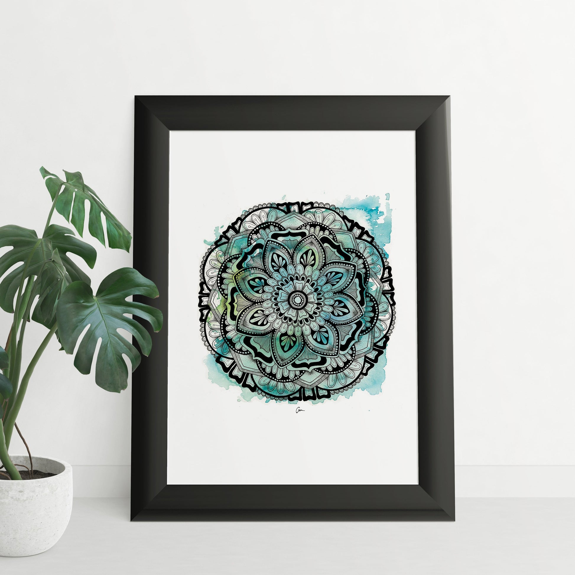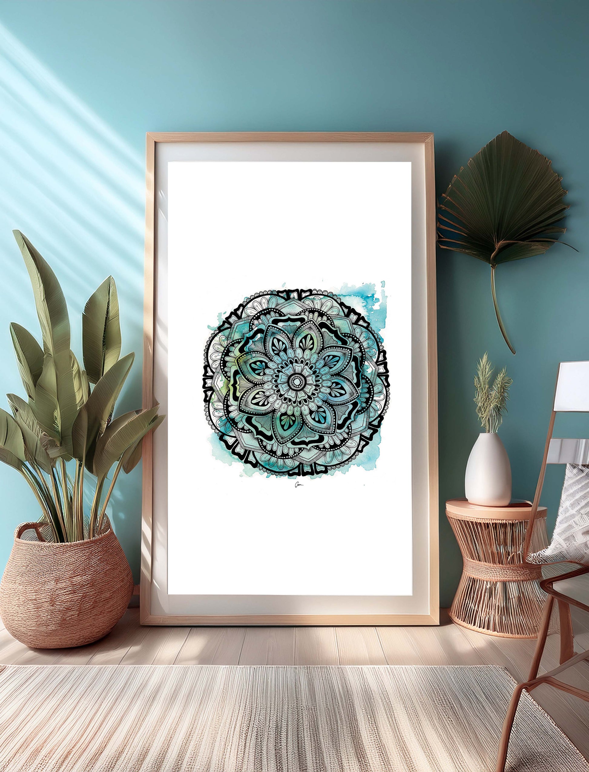 Watercolour Mandala Print - Blue Green Wall Artwork