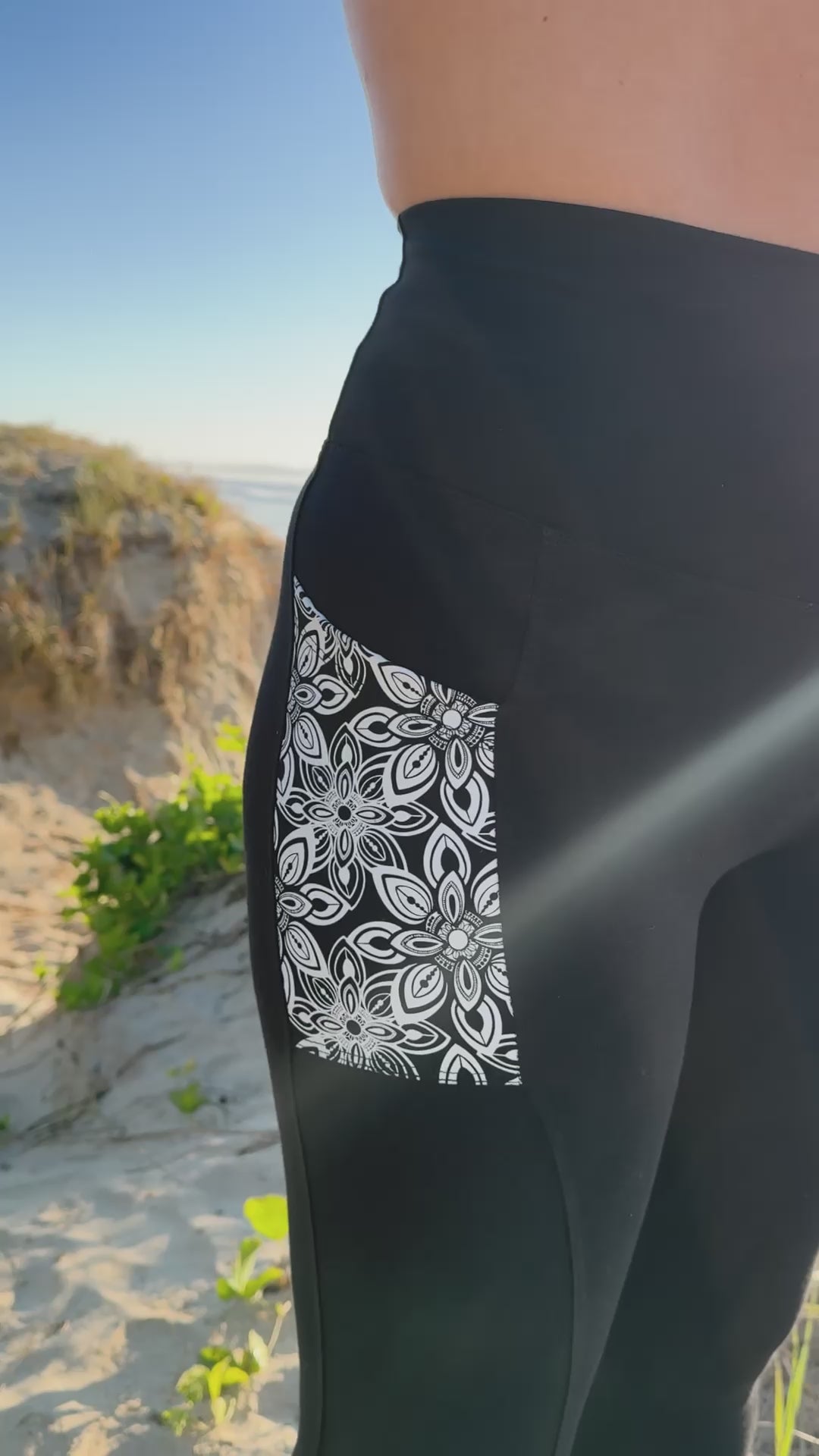 Organic Cotton Pocket Leggings – Black with Mandala Print