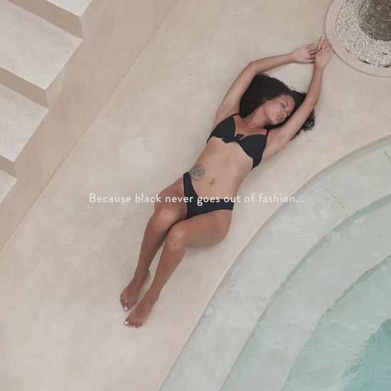 Underwire Bra Bikini Top –– Black Ribbed Textured Sustainable Bikini