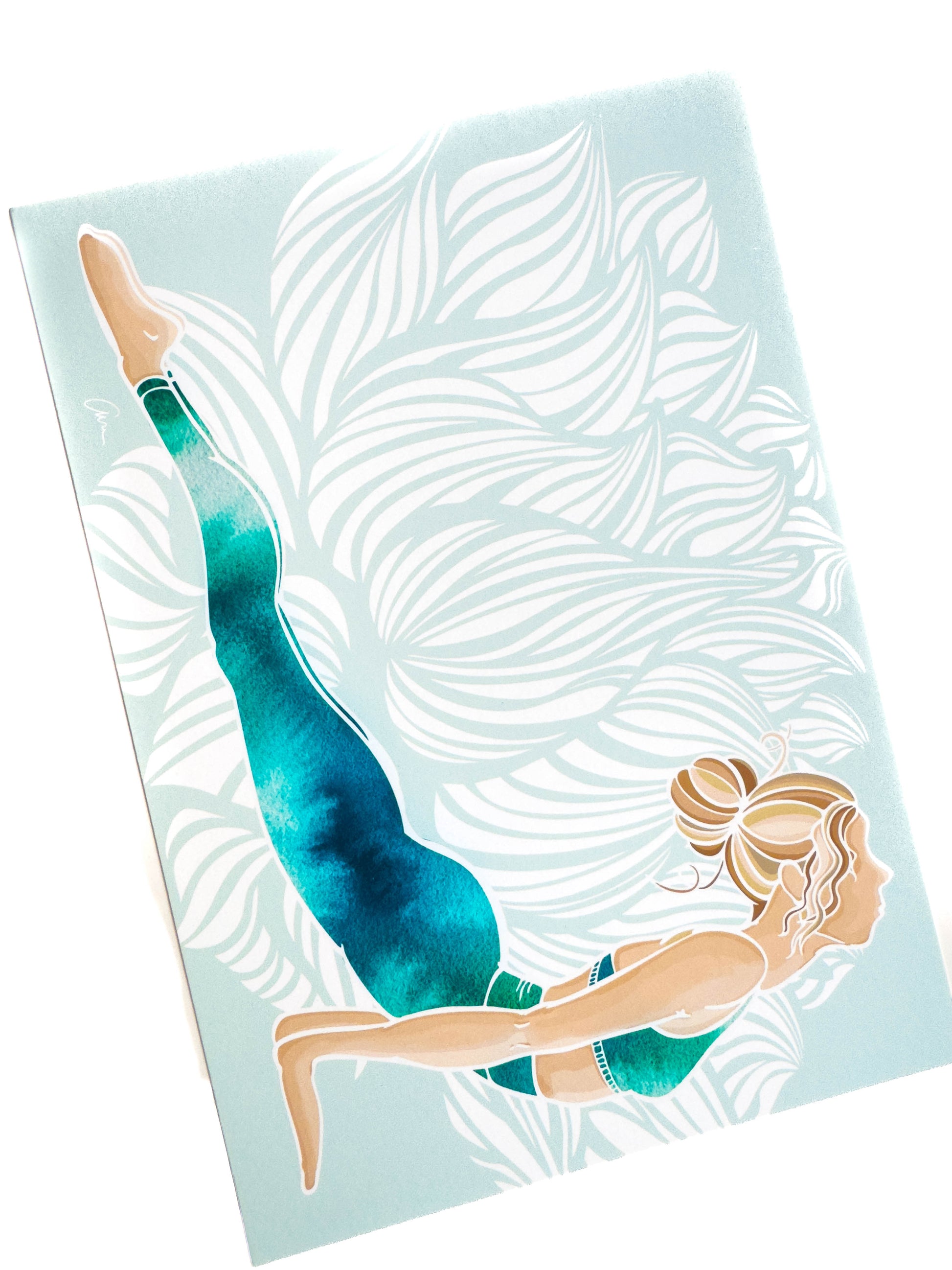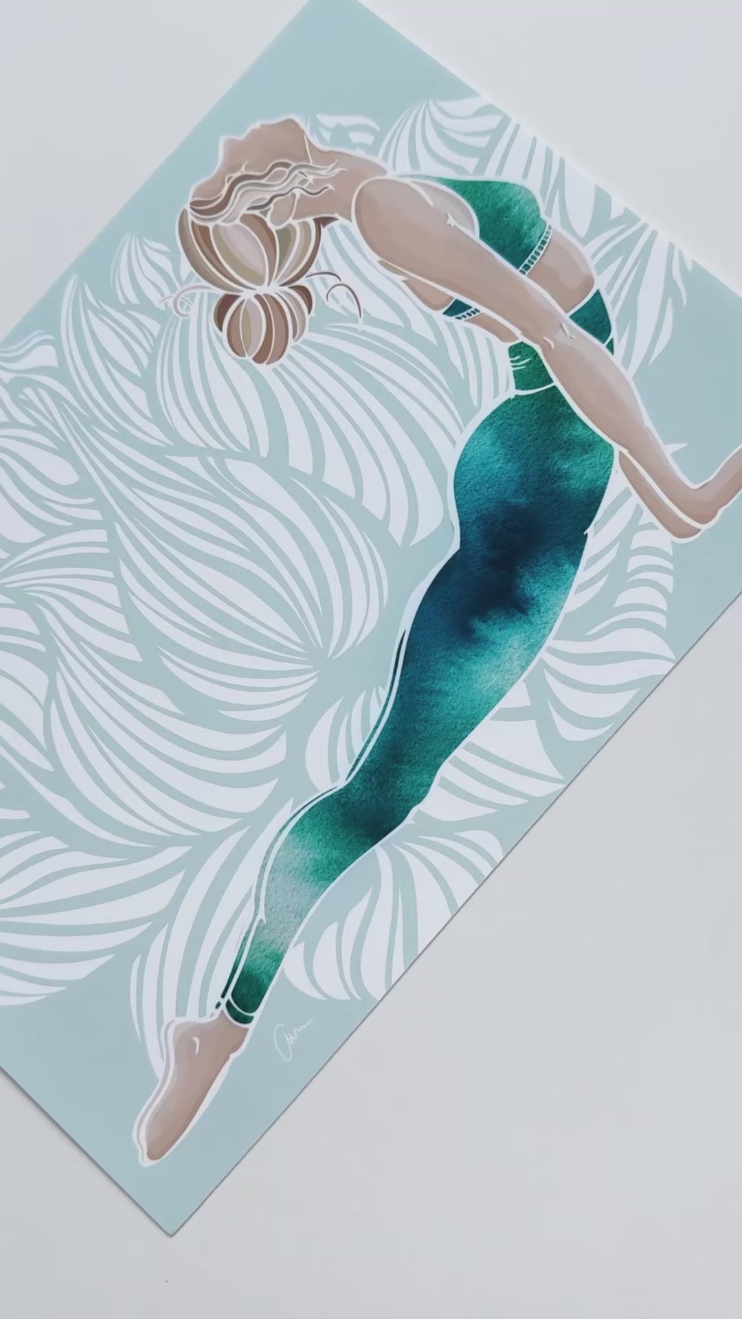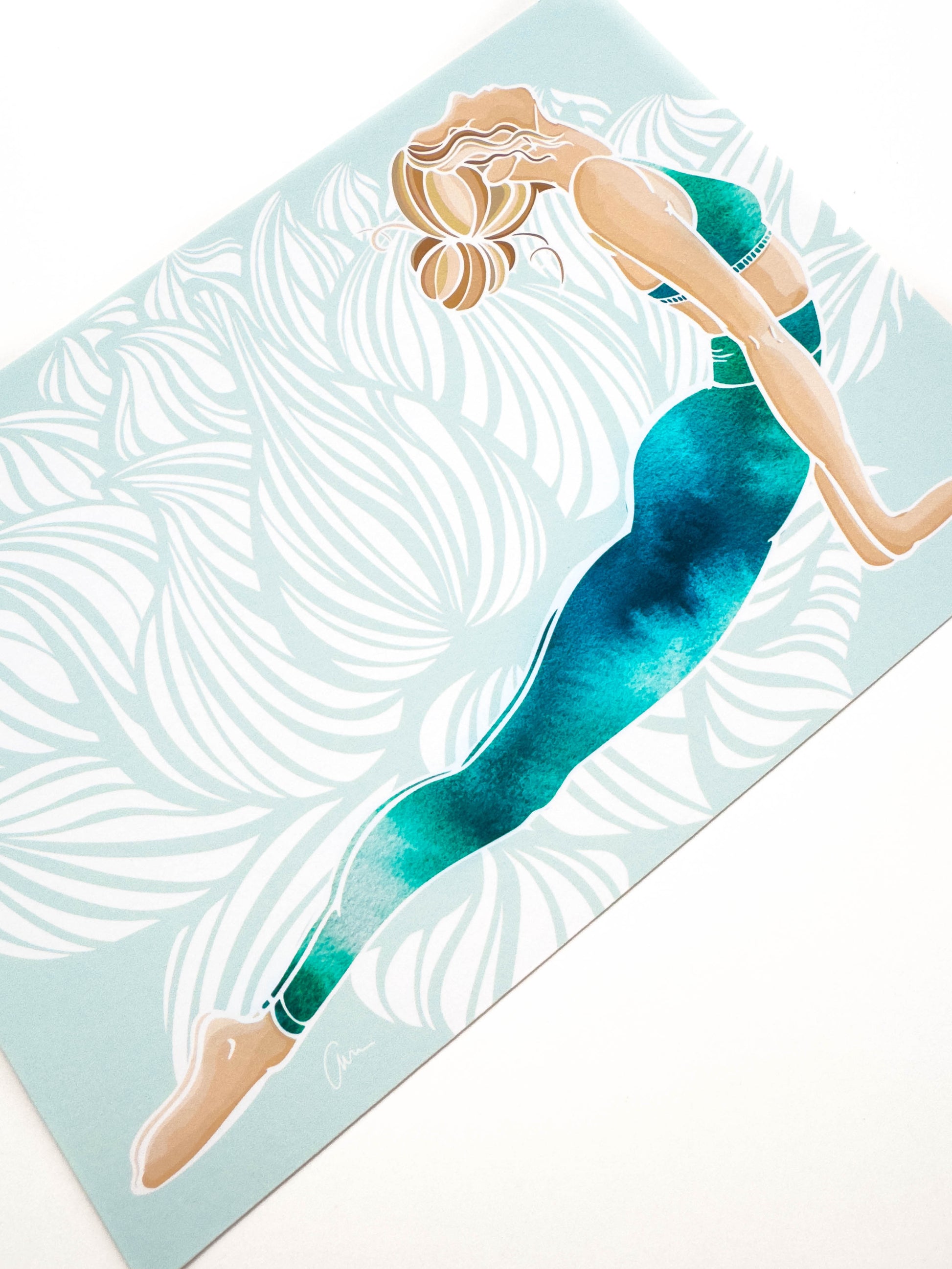 This artwork is digitally hand-drawn with a soft, calming colour palette that mirrors the femininity and growth cultivated through yoga practice.
