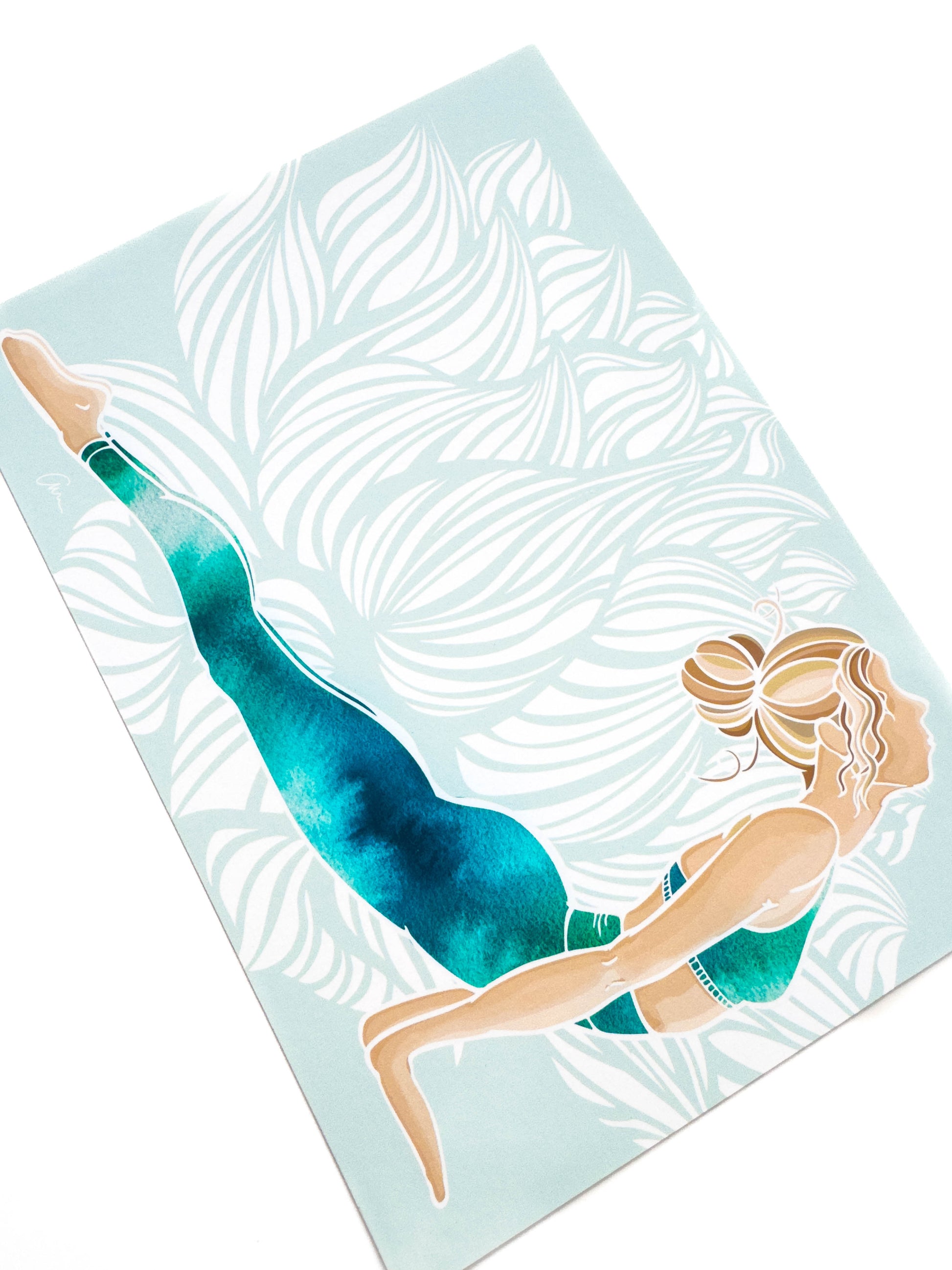 Digitally hand-drawn in a soft, calming colour palette, the piece reflects the beauty, strength, and growth cultivated through regular yoga practice.